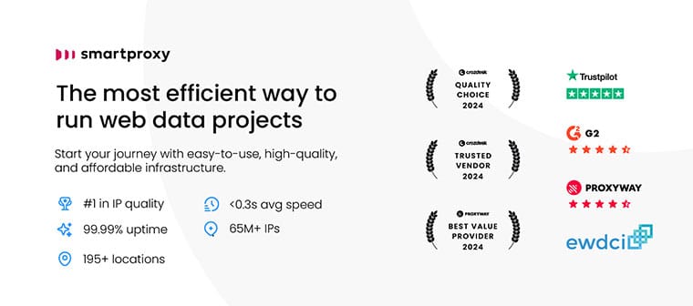 Bright Data is an absolute juggernaut when it comes to pretty much any type of proxy service. The company has a very impressive network consisting of more than 40 million proxies at its disposal, about 500.000 of which are located in state-of-the-art data centers. Bright Data has more than 1500 subnets at its disposal and offers proxy locations in 85 countries around the world. The provider has an excellent reputation thanks to its ethical business practices, which has allowed it to gain favor with a lot of Fortune 500 enterprises over the years. If you’re not sure which proxy provider to pick, Bright Data is always a safe bet.