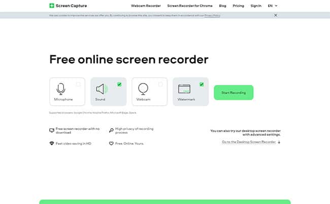Created by leading software developer Movavi, Screen Capture is a completely free and easy-to-use online screen recorder for Linux and other devices. It lets you instantly capture your screen without the need for any downloads or installations, and it makes high-quality recordings of your screen and your webcam if needed.