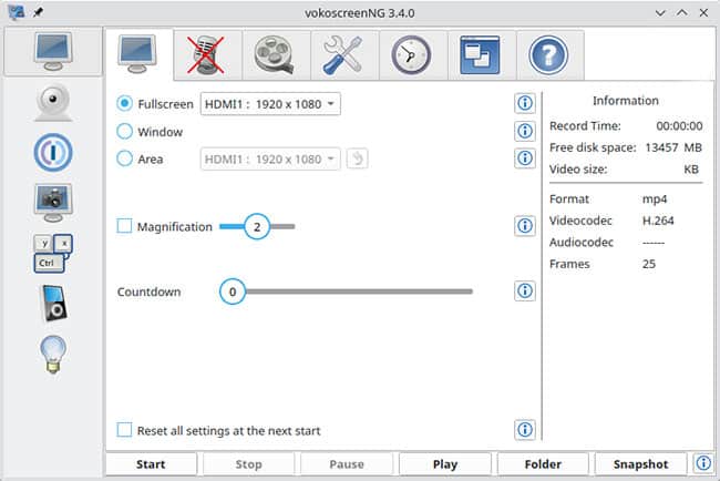 VokoscreenNG, otherwise known as just Vokoscreen, is another Linux video screen capture app. This is a pretty simple and beginner-friendly screen recorder for Linux. It lets you capture either the whole screen or different areas of the screen, and you can magnify or zoom in on certain sections if you like.