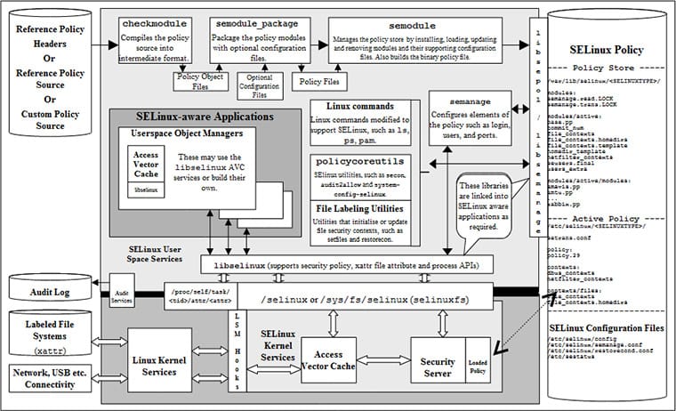 SELinux, or Security-Enhanced Linux, is an access control module that integrates at the kernel level. National Security Agency (NSA) was the first to develop it in collaboration with Red Hat, but other contributors continue to update it due to Linux’s open-source nature. It’s one of two popular managed access control (MAC) modules, the other being AppArmor.