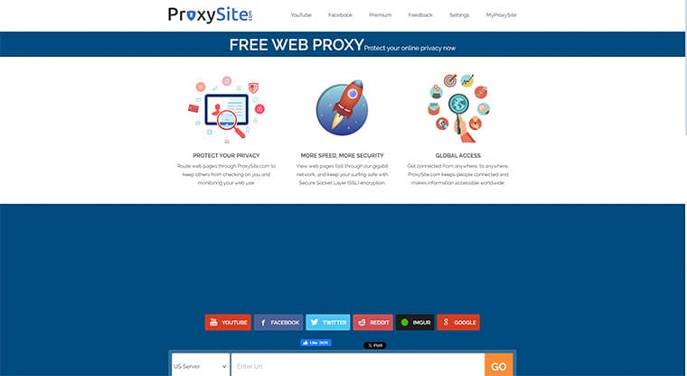 Since I’ve already mentioned convenience earlier, there is another nice feature available on the site that will make things easier and faster. Just above the URL bar, you can find a series of buttons that will take you straight to proxy versions of popular websites such as Google, YouTube, Facebook, Twitter, and more. That’s great for situations when you don’t want to type in or copy a URL because you can simply visit the target website first and then proceed from there. ProxySite also has a Settings section where you can see and delete all the cookies stored by your computer while visiting websites via the service.