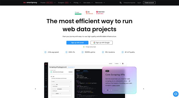 Unlike many free proxy providers, Oxylabs gives users access to the same high-quality infrastructure that powers their premium services, with 99.9% uptime and minimal connection failures. The free proxies include basic customer support, a rare feature among free proxy services. This combination of quality, ease of use, and reliable performance makes Oxylabs an excellent choice for users looking to try premium-level proxies without immediate commitment.