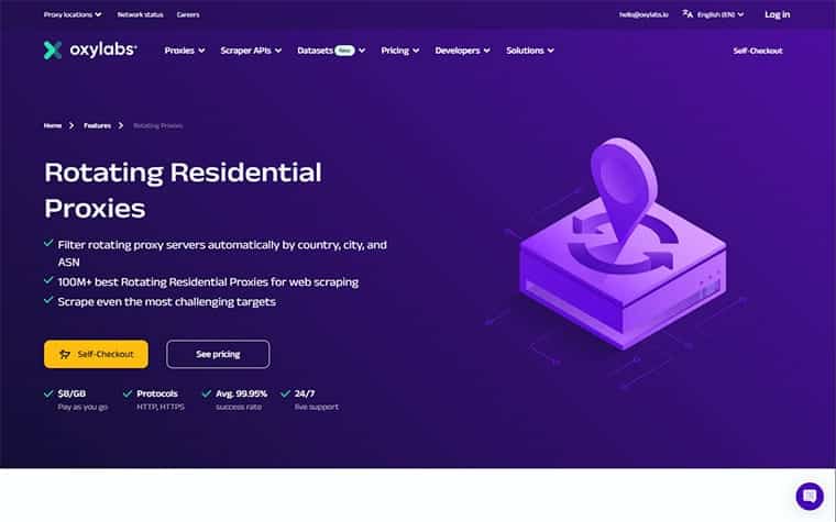 Oxylabs is a well-regarded provider offering a comprehensive network of rotating residential proxies. The company’s network includes over 100 million IP addresses, providing extensive location coverage across 195 countries. With their robust infrastructure, Oxylabs ensures high success rates and minimal IP bans, making it a top choice for large-scale data extraction and web scraping tasks.