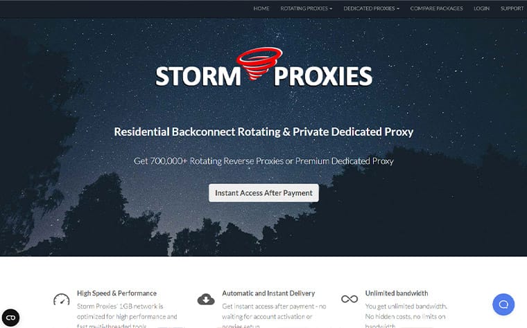 Storm Proxies provides a cost-effective solution with reliable rotating proxies optimized for various activities, including web scraping, brand protection, and data extraction. Although it has a smaller network and limited global coverage, its affordability and performance make it an excellent choice for users targeting the US and EU markets. The unlimited bandwidth feature and flexible rotation intervals further enhance its value.