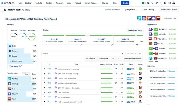 Jira Align gives real-time insight across businesses and presents a thorough picture of teams, projects, and initiatives. To plan strategically and make educated choices, stakeholders have access to up-to-date information.
