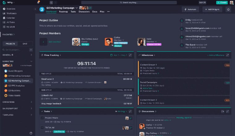 Nifty is an application for project management that facilitates automated workflow management. Teams may use it to: