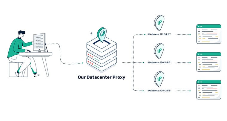 Datacenter proxies are intermediaries that route your internet traffic through powerful servers in commercial data centers. Residential internet service providers don’t verify such connections, but they aren’t limited by them either. Such an internet connection ensures that datacenter proxies are the fastest proxy type.