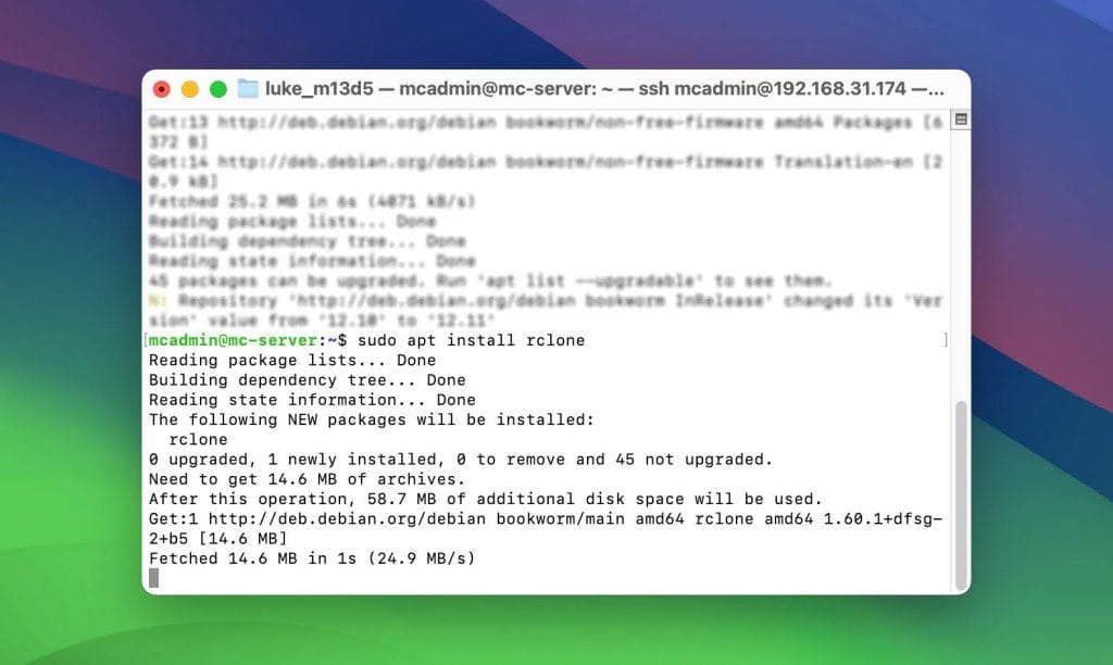 - On your headless Linux install rclone utility: sudo apt install rclone. Also, install it on the PC with a GUI and a browser (this can be your Mac or another Linux desktop).