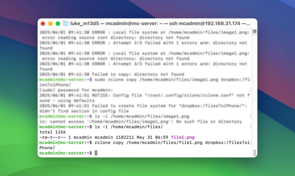 This method is stable, doesn’t require any complex setup, and works consistently across all modern Linux distributions. It’s especially useful if you’re dealing with large files or want a straightforward push-transfer setup without needing cloud storage.