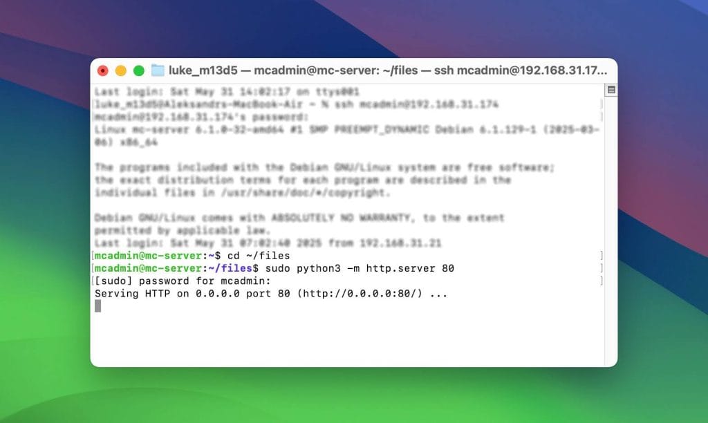 One of the simplest and most effective ways to transfer files from Linux to your iPhone is to set up a temporary HTTP server using Python. No need to install anything extra – Python is already included in most Linux distributions. This method doesn’t involve SSH file transfer directly, but since we’re assuming SSH access (e.g., working headlessly or remotely), it’s a natural fit.