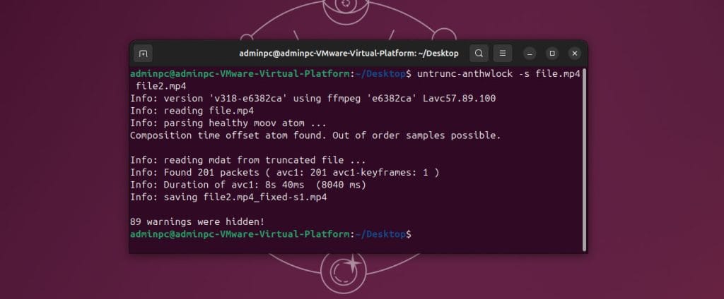 The last tool on our list is Untrunc. This utility specializes in restoring damaged (truncated) video files but supports a relatively limited number of video formats, specifically MP4, M4V, MOV, and 3GP. It addresses only one specific issue: the missing MOOV atom, which is necessary for video playback. Untrunc operates on a principle similar to Clever Online Video Repair, requiring a healthy reference file to function. However, like FFmpeg, it functions through the command line. Its operation, while powerful, is highly specialized and suited for a narrow range of problems.