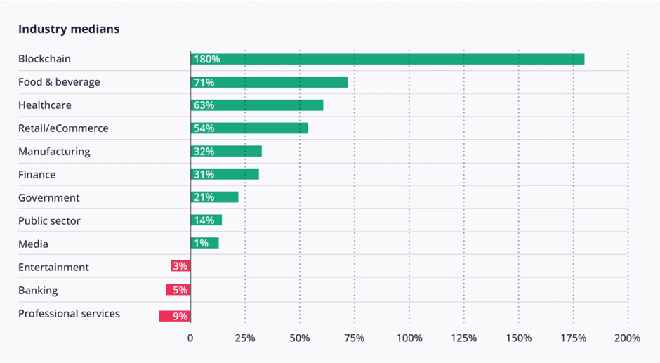 Industries such as blockchain and healthcare have seen dramatic increases in rewards: